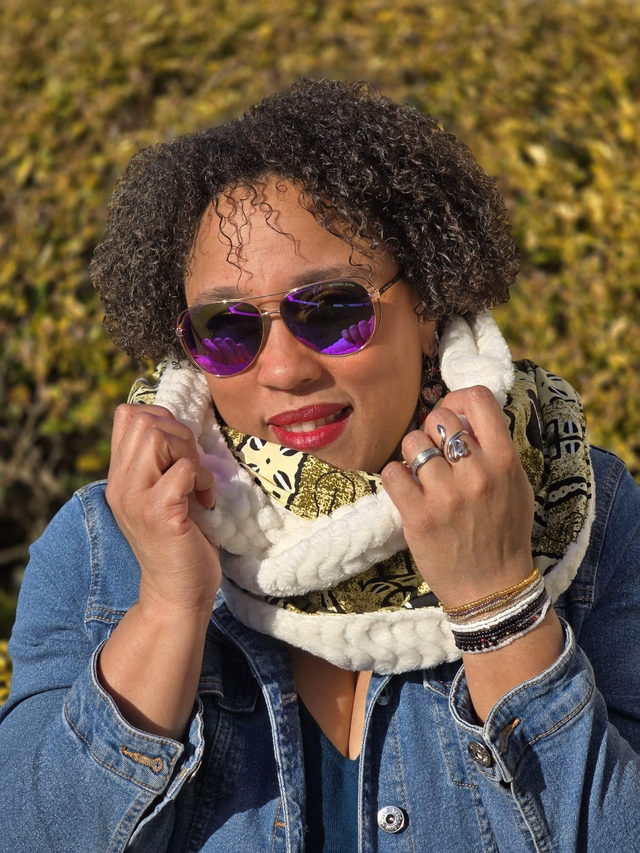 Apportez une touche de couleur et de chaleur à vos tenues hivernales avec ce snood en tissu wax, doublé d'une matière douce pour un confort optimal. Confectionné à la main en Auvergne, chaque snood est une pièce unique qui allie style et artisanat.